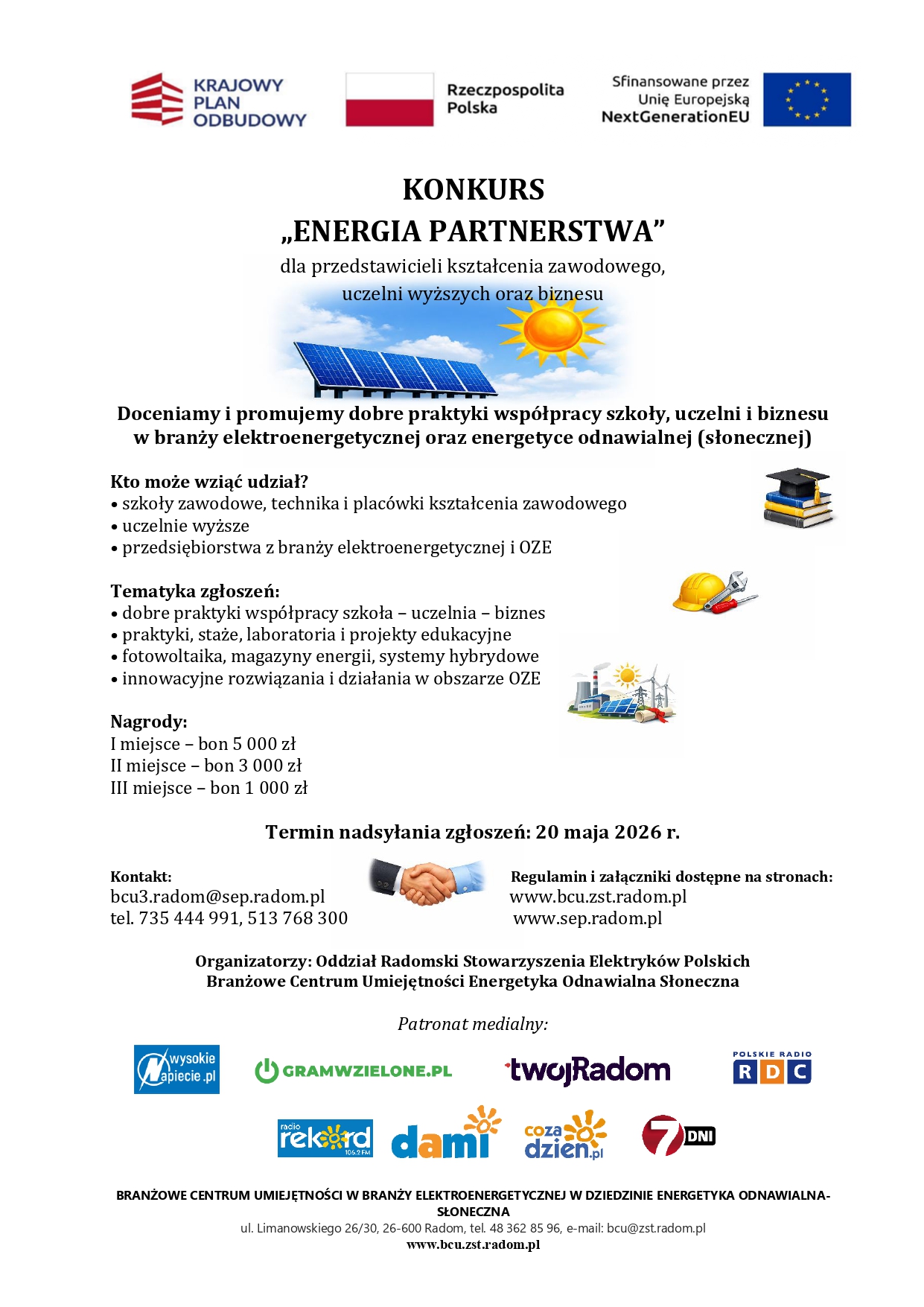 Termin nadsyłania zgłoszeń upływa 20 maja 2026 r., a wyniki zostaną ogłoszone do 29 maja 2026 r. na stronach SEP i Branżowego Centrum Umiejętności w Radomiu.